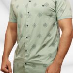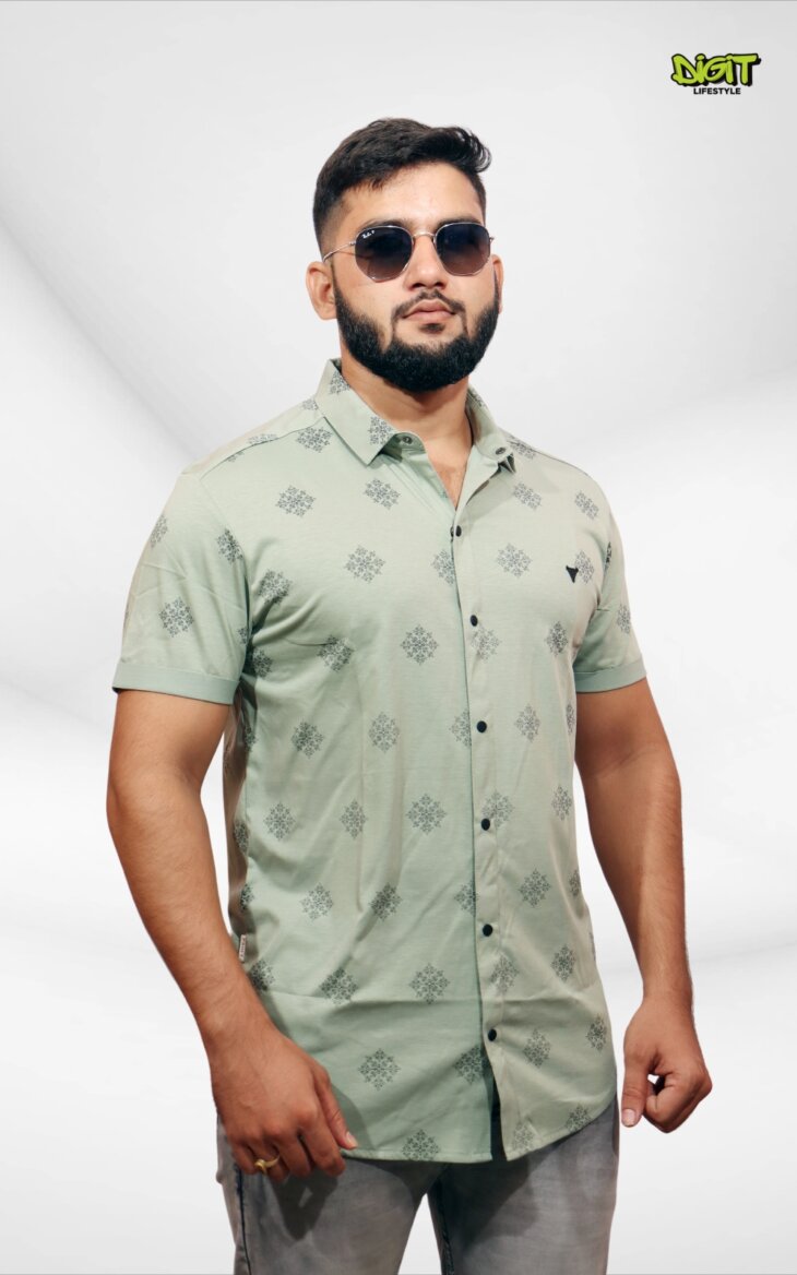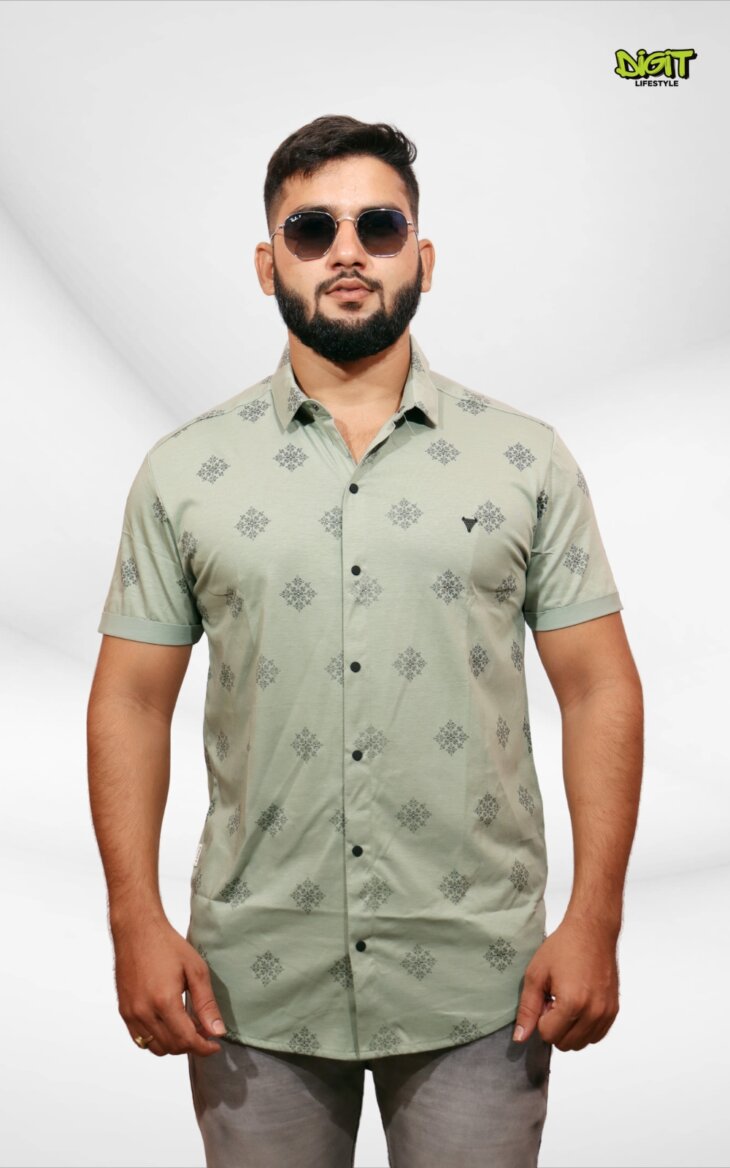 Make a bold impression with our Geometric Floral Print Shirt, where vivid patterns intertwine in a striking display of modern elegance. Impeccably tailored, this shirt adds a bold touch to your style with its unique blend of geometric and floral motifs.
