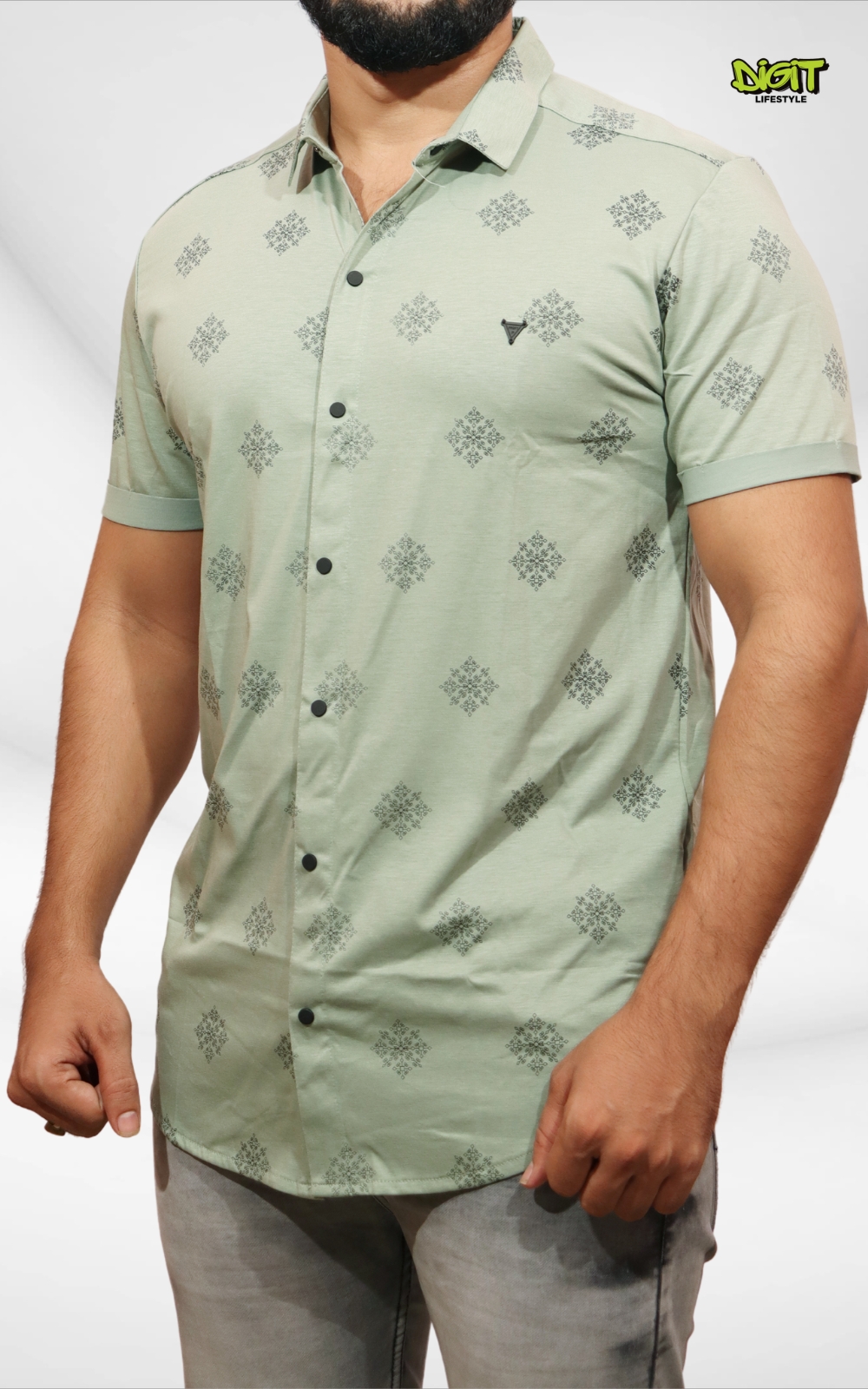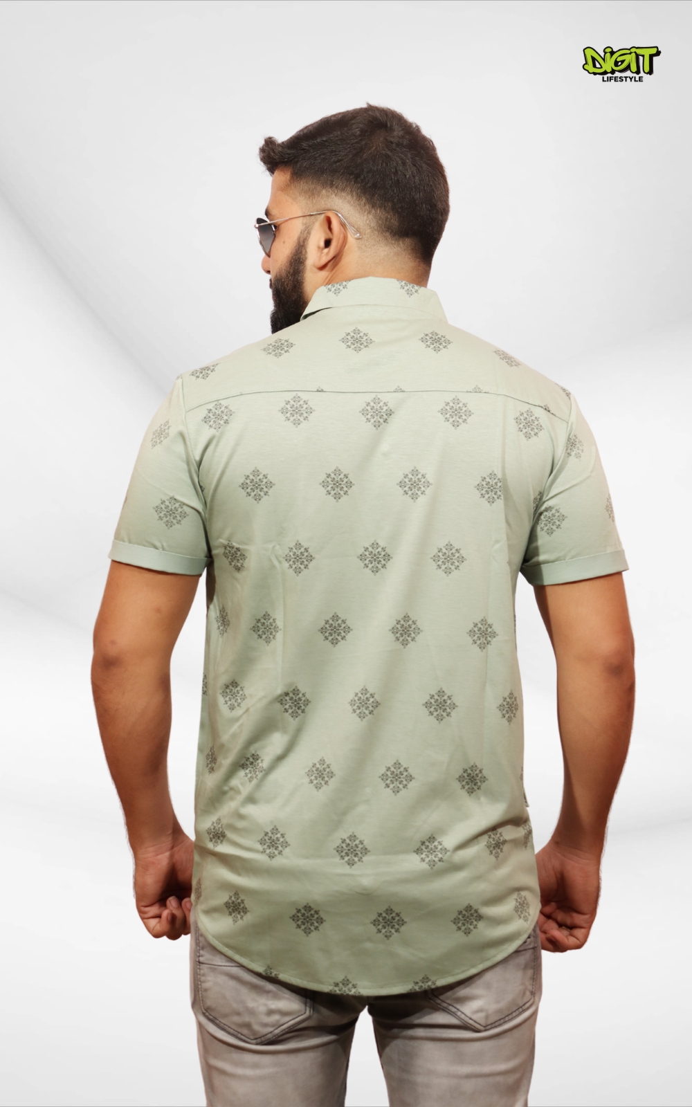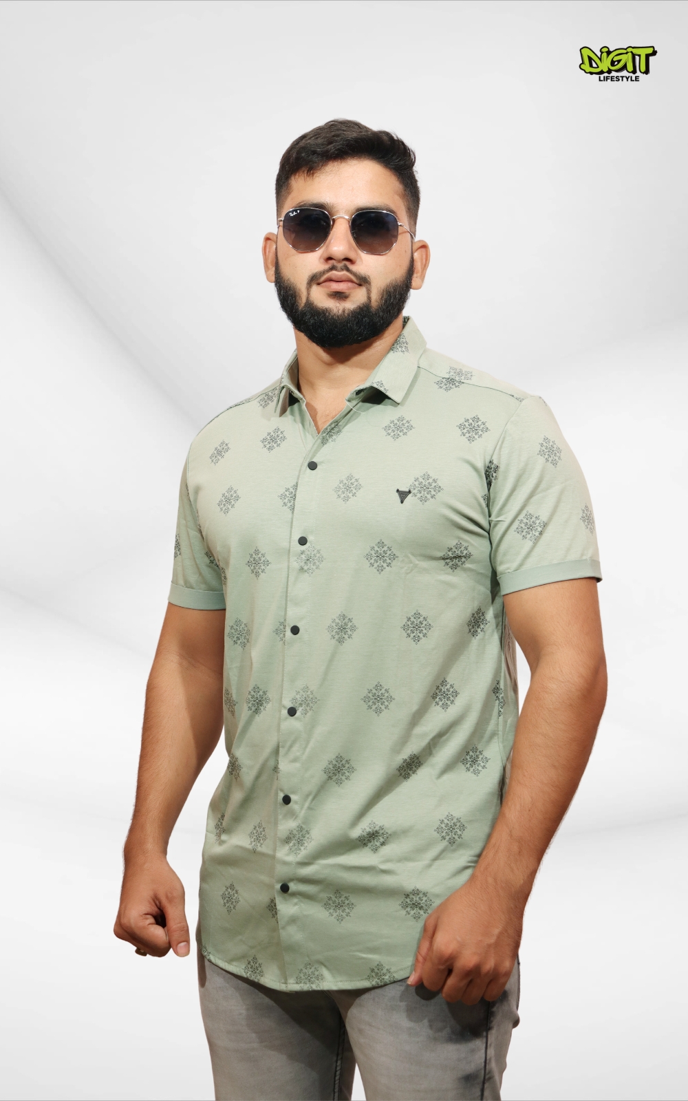 Make a bold impression with our Geometric Floral Print Shirt, where vivid patterns intertwine in a striking display of modern elegance. Impeccably tailored, this shirt adds a bold touch to your style with its unique blend of geometric and floral motifs.