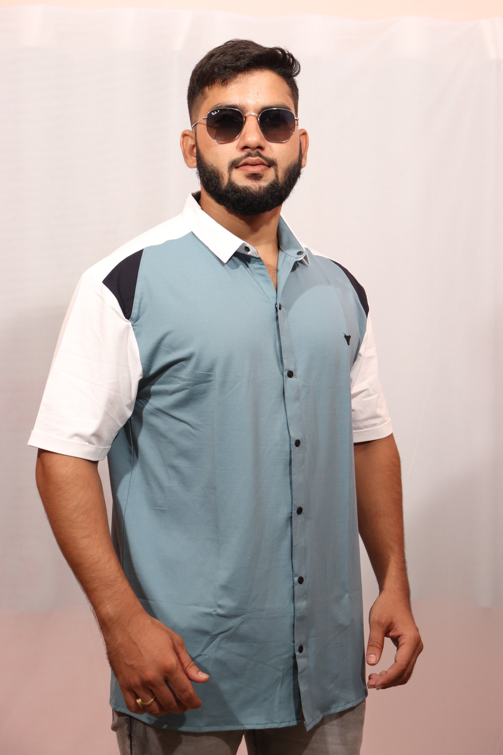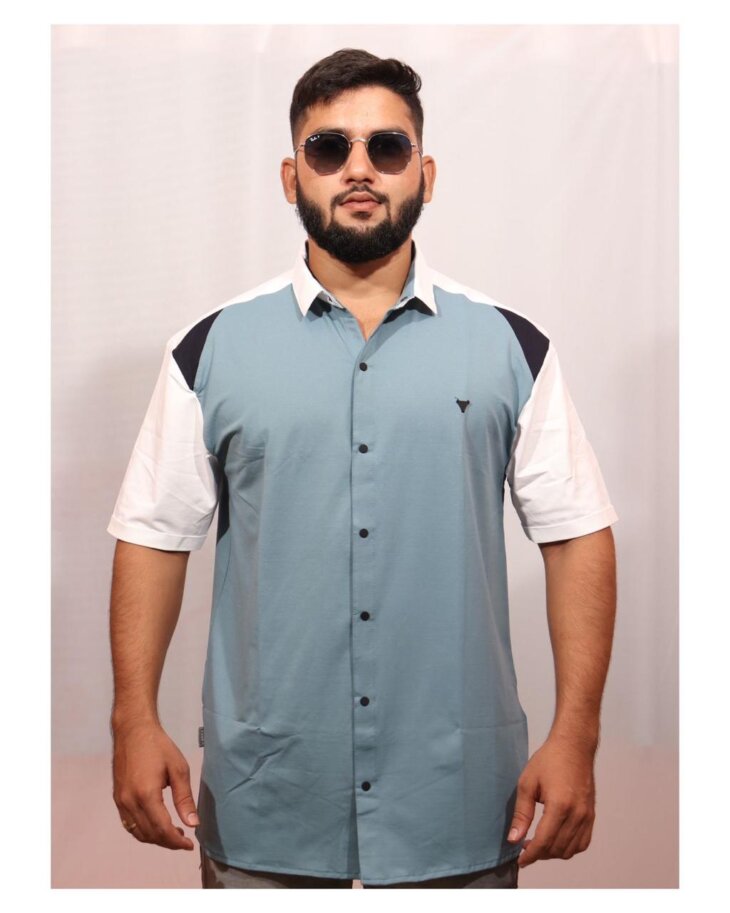 Embrace a mix of retro charm and modern design with our beige and light-blue structured half sleeves shirts for men. The airy mesh construction and premium fabric keep you cool and comfortable. Pair it with trousers or baggy jeans for a stylish look that exudes effortless cool.